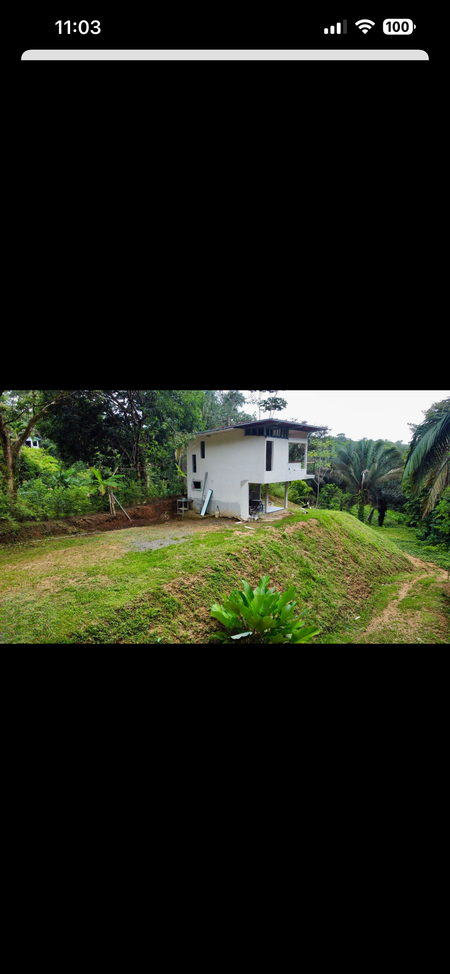 The existing 90 m² structure is thoughtfully designed on two levels. The ground floor includes an outdoor kitchen and a full bathroom, while the upper floor features two bedrooms with serene forest views and an additional bathroom.