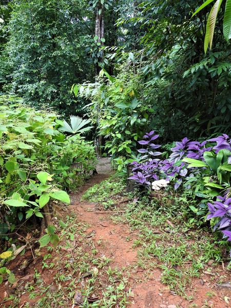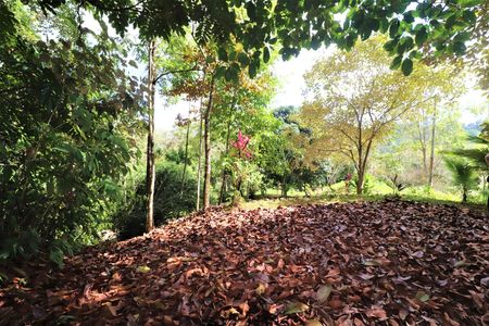 The property, nearly 2 acres in size, is completely enveloped by a lush primary forest. Numerous mighty, ancient and precious trees create a magical and serene feeling. Several trails, cut by the owner, criss-cross the lot. A road leads from the gate to the house, with parking provided near the gate - the owner, wanting to preserve the natural lushness and beauty, insisted on keeping the carpark near the edge of the property.