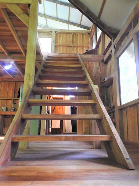 The house is approximately 50 meters away from the gate, placed along a wide, well-maintained path that can easily be converted to a driveway. It sits in a picturesque part of the property, surrounded by breathtaking trees and practically drowning in greenery. It is built entirely of teak, pine and bamboo. Mounted on high columns, the house is separated from ground moisture and jungle critters which the property contains in innumerable quantities (the birds and butterflies are not affected by this!).
