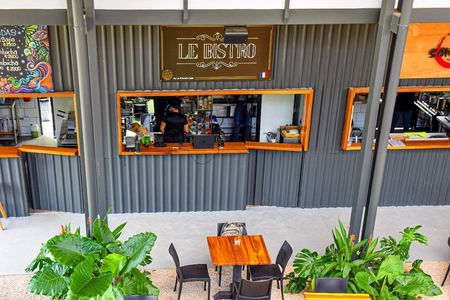 The ground floor is a gastronomic haven with eight diverse offerings: Contra Maria Chevicheria, Le Bistro, Samurai, Books BBQ, Brunch, Tacos, Ice Cream & Rolls, and the Italian place Portofino, complete with the Imperial Bar. This vibrant area, central to the structure, has seating for over 100 guests and is complemented by a sanitary block of eight toilets. Also located on the ground floor is Monkey Ride, an office providing ground transfers throughout Costa Rica.