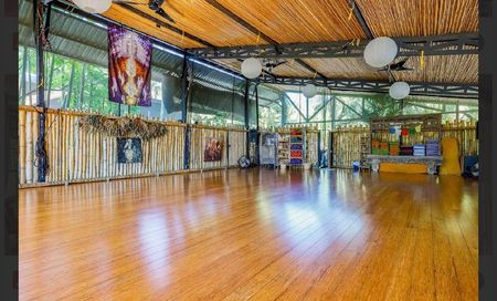 The property spans nearly half an acre and features 12 guest rooms in two configurations, 5 staff rooms, an outdoor semi-enclosed kitchen, a yoga studio with capacity for aerial practices, a boutique retail space that doubles as reception, a pool and pool deck, elevated walkways, lush gardens, and numerous lounge areas for relaxation. Additional amenities include laundry, storage, and equipment areas, fully equipped to service both the property and retreats.