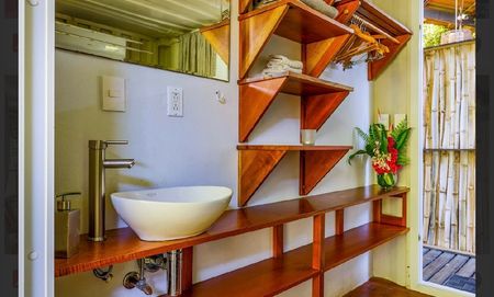 This retreat was built as a profitable passion project and blends a durable industrial-style build with soft organic touches, ensuring it harmonizes with the tropical landscape while offering lasting quality. Located just a short walk from the beach, it offers a serene riverfront setting and is close to restaurants, a brewery, an organic farmer's market, Bitcoin-friendly vendors, and other boutique businesses in Dominical.